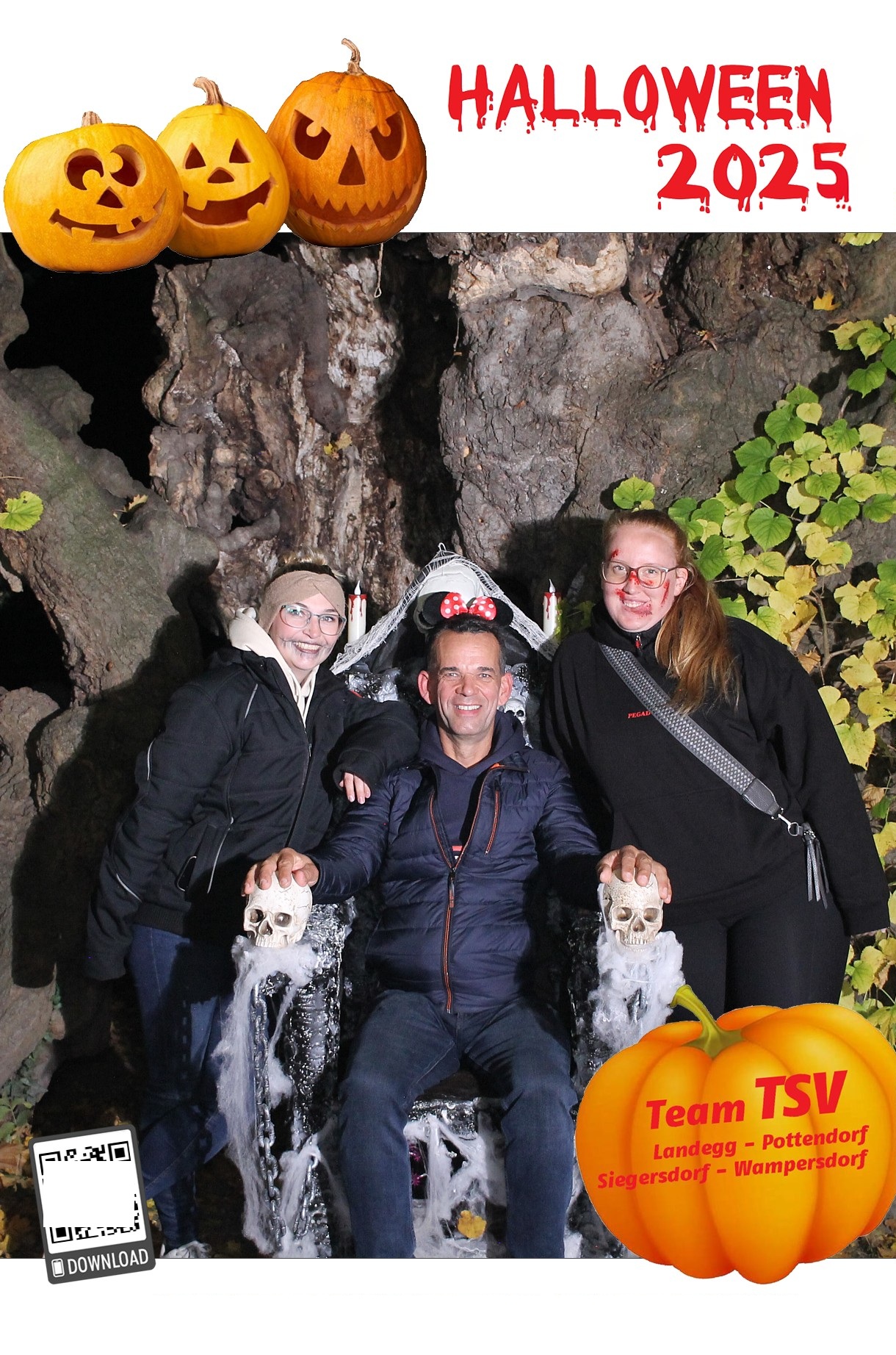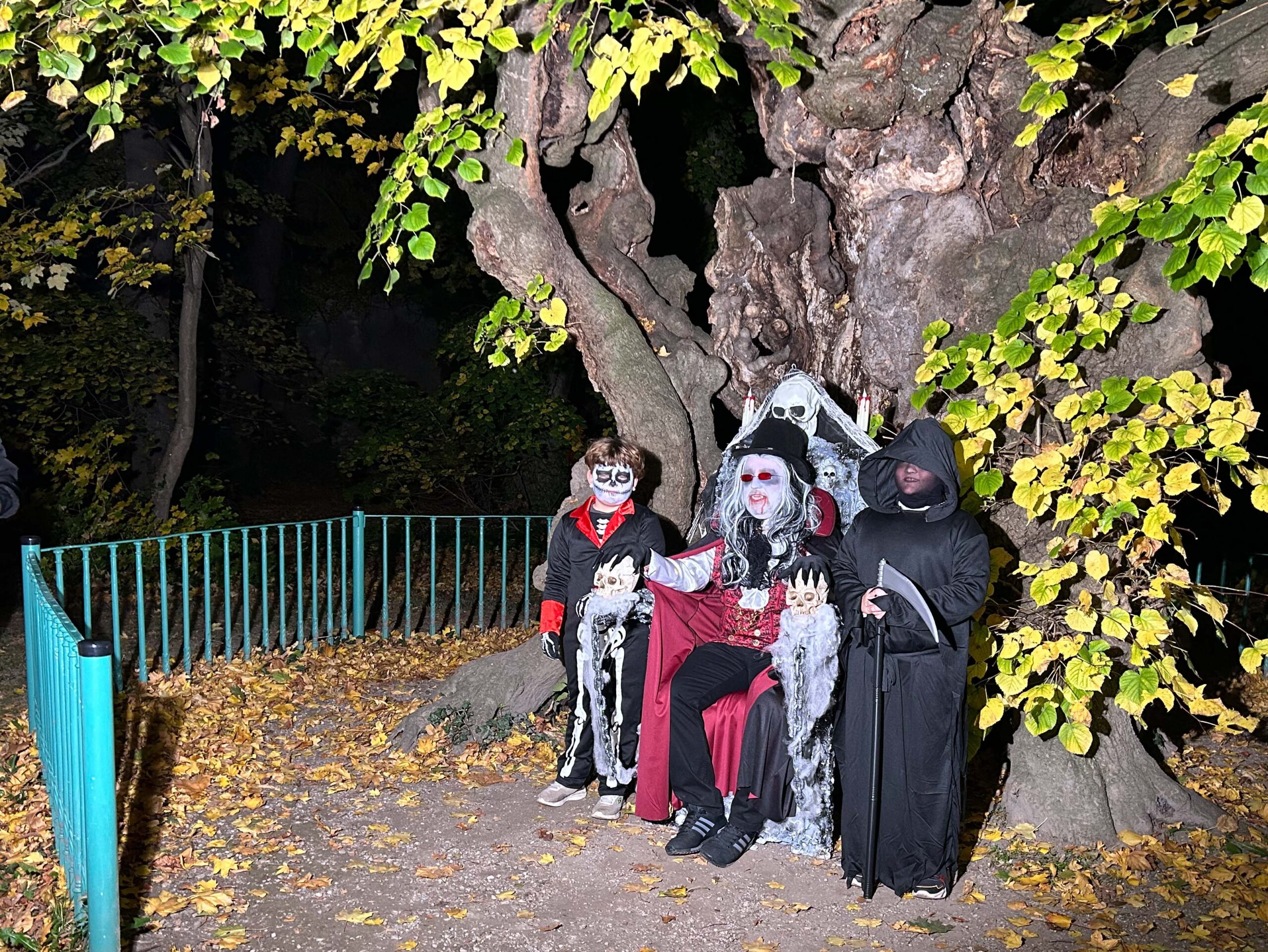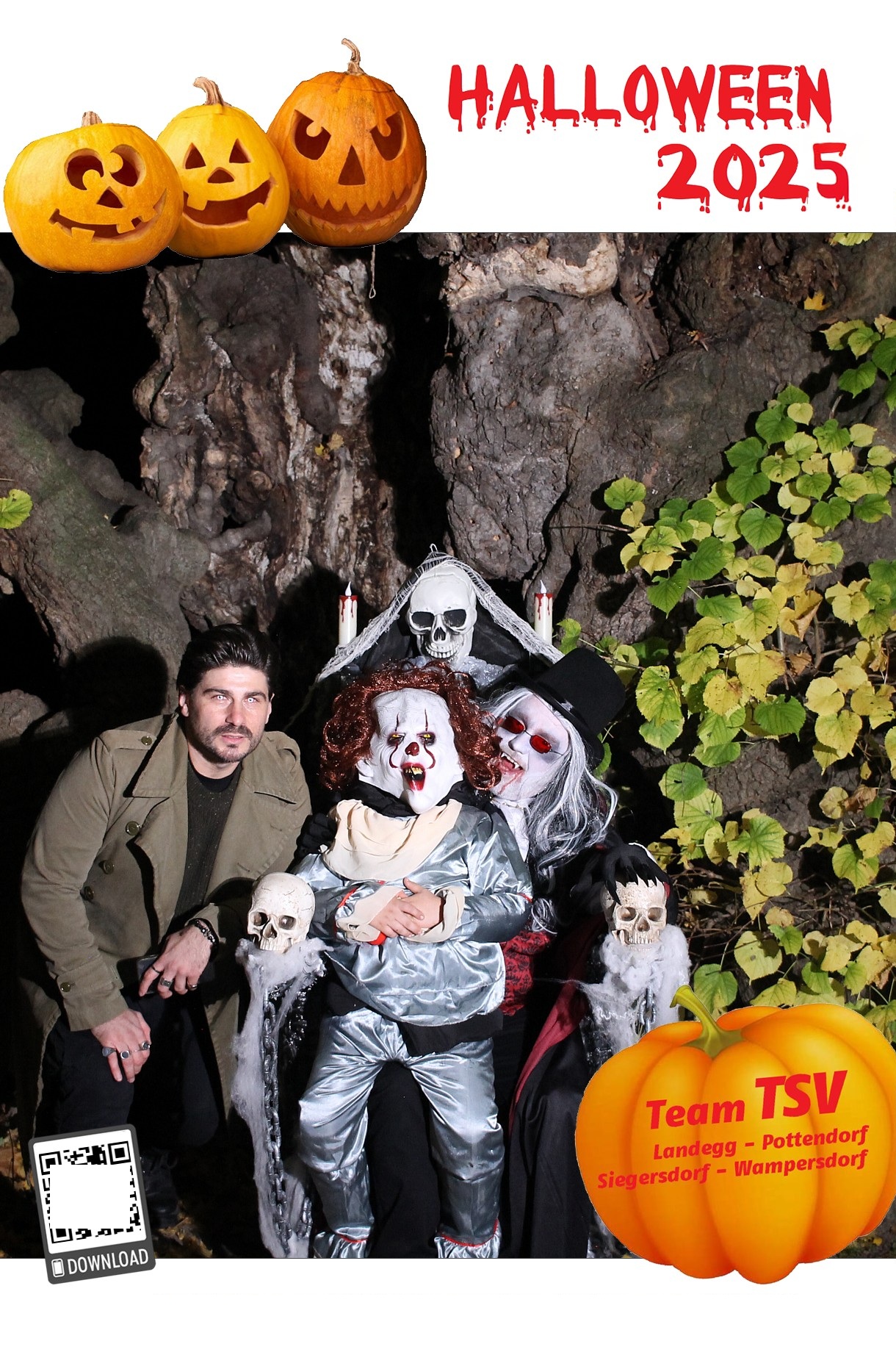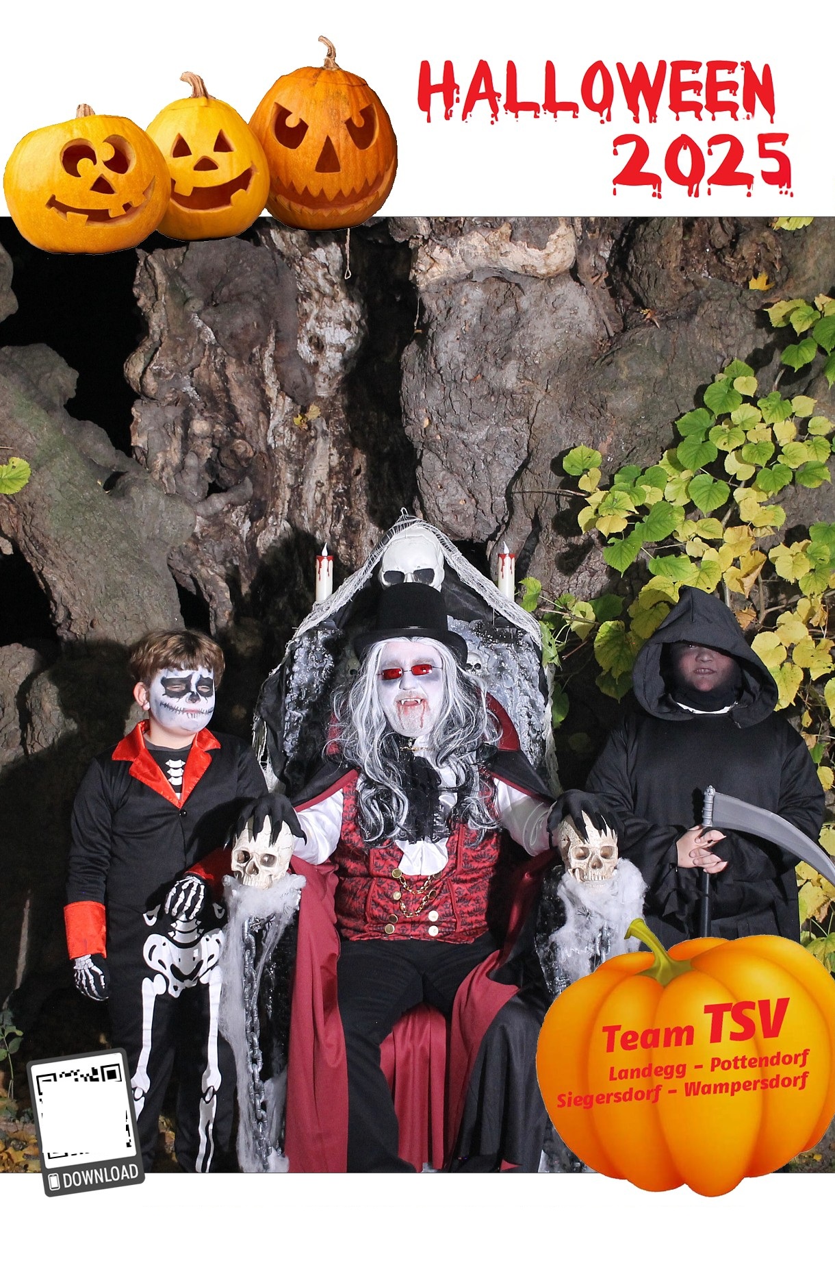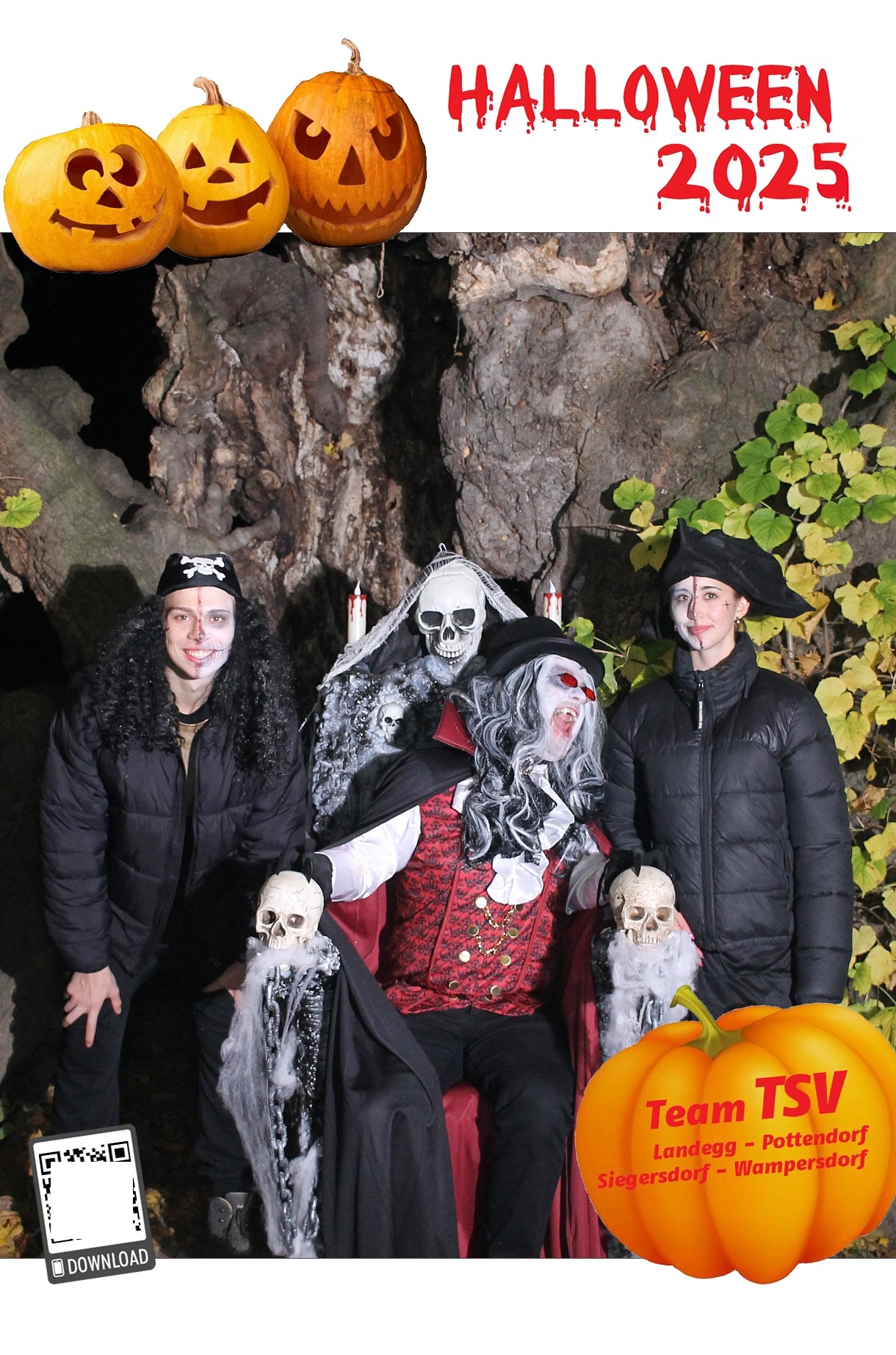 Um 17.30 Uhr machten sich dann rund 700 Besucher:innen auf um die 5 Stationen zu besuchen und sich ein Erinnerungsfoto bei der 1000-jährigen Linde zu holen. Diesmal unterstützte ein Vampir – GR Andreas Fried – Roman Seidl bei der Fotobox.