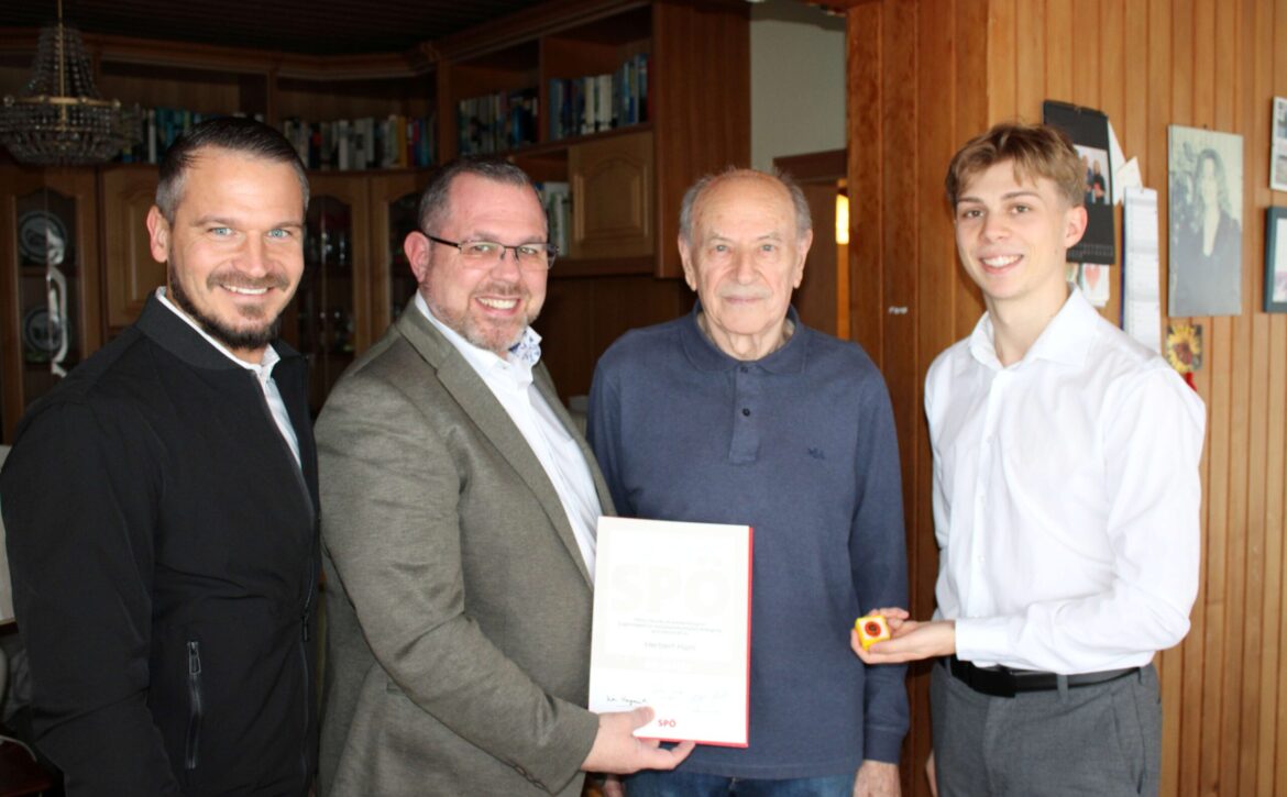 Heute durften Bgm. Thomas Sabbata-Valteiner, GGR Harald Steiner und GGR Maximilian Schubert, Herbert Ham zum 85. Geburtstag gratulieren und sich bei ihm für 60 Jahre Mitgliedschaft bei der SPÖ bedanken und dafür auszeichnen.